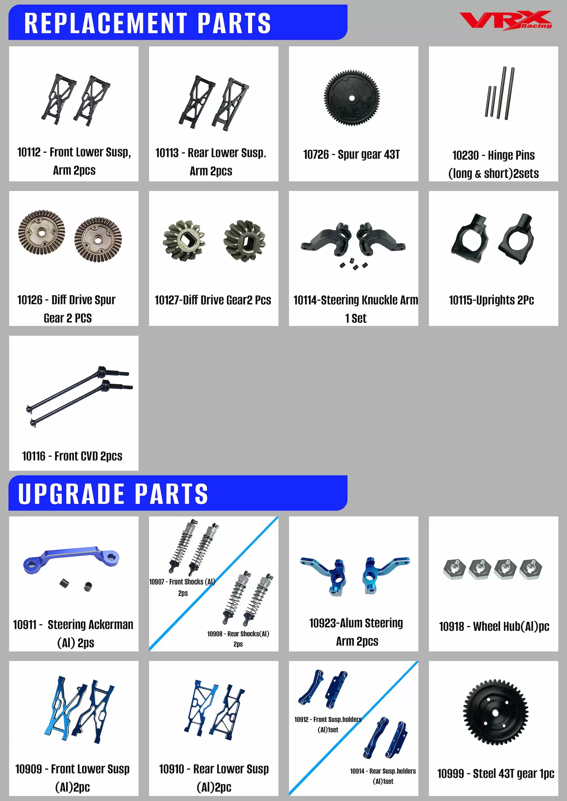 الأجزاء الزرقاء للسيارة بأكملها مصنوعة من مادة الشب ، مما يوفر مزايا متعددة. صلابة عالية تعزز صلابة الالتواء ، وتحسين دقة التعامل والاستقرار أثناء المناورات أو الآثار عالية السرعة. تقلل طبيعة الألومنيوم الخفيفة والمتينة من الوزن الإجمالي مع الحفاظ على السلامة الهيكلية ، وتعزيز التسارع وكفاءة البطارية. هذه المكونات تمتص الاهتزازات بفعالية ، وتحمي الإلكترونيات مثل ESCs وأجهزة الاستقبال. يعمل تبديد الحرارة المعزز على منع التسخين الزائد في أنظمة الطاقة.