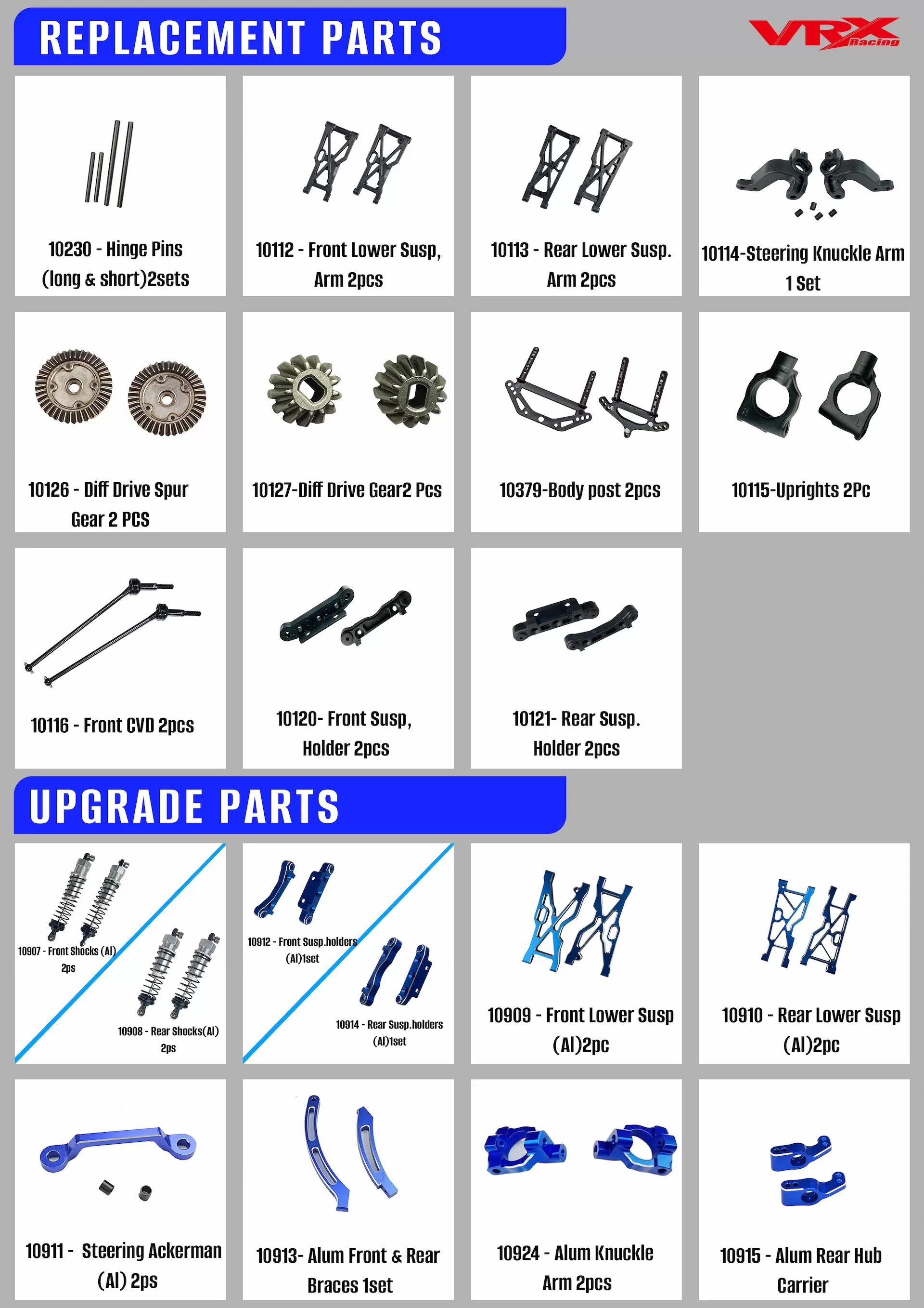 نظام تعليق قابل للتعديل بالكامل بما في ذلك ، تدلى ، كامبر ، إصبع القدم ، قاعدة العجلات وغيرها ، من خلال ضبط نظام التعليق ، يمكن للاعبين تحسين أداء سيارتهم بناءً على ظروف المسار واحتياجات القيادة ، ضبط التعليق ليناسب الأسطح المختلفة (e. ز. ، مسارات سلسة ، التضاريس على الطرق الوعرة). يمتص الصدمات بفعالية أثناء القفزات أو التضاريس الوعرة ، ويحمي الشاسيه والإلكترونيات. يُحسّن ملامسة الإطار للأرض من أجل تحسين الإمساك والسحب.