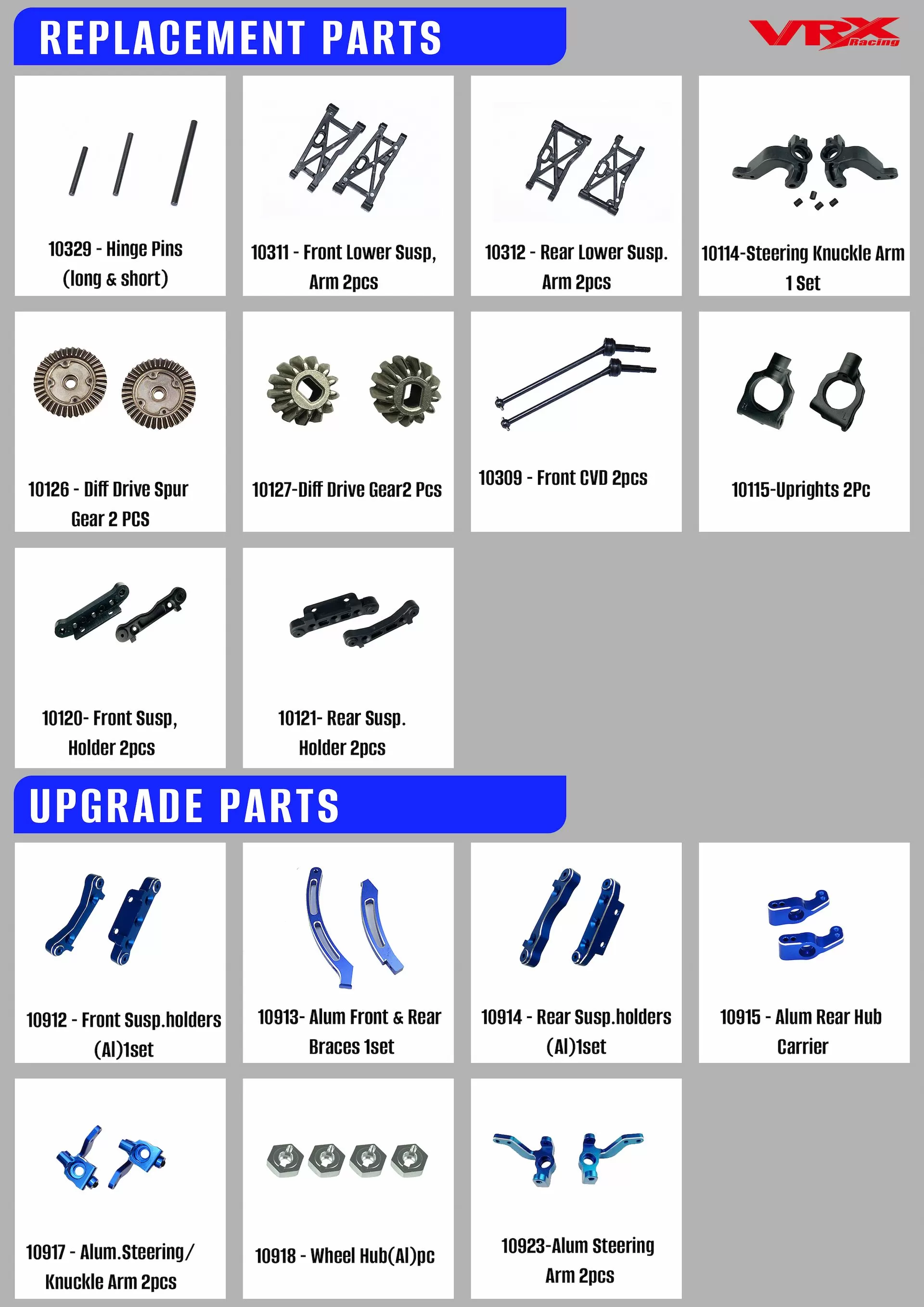 نظام تعليق قابل للتعديل بالكامل بما في ذلك ، تدلى ، كامبر ، إصبع القدم ، قاعدة العجلات وغيرها ، وضبط المحرك يمكن تحسينه للمسارات المختلفة ، مكونات قطار القيادة المعدنية وتصاميم الشاسيه القوية التي تتعامل مع التضاريس الوعرة.
